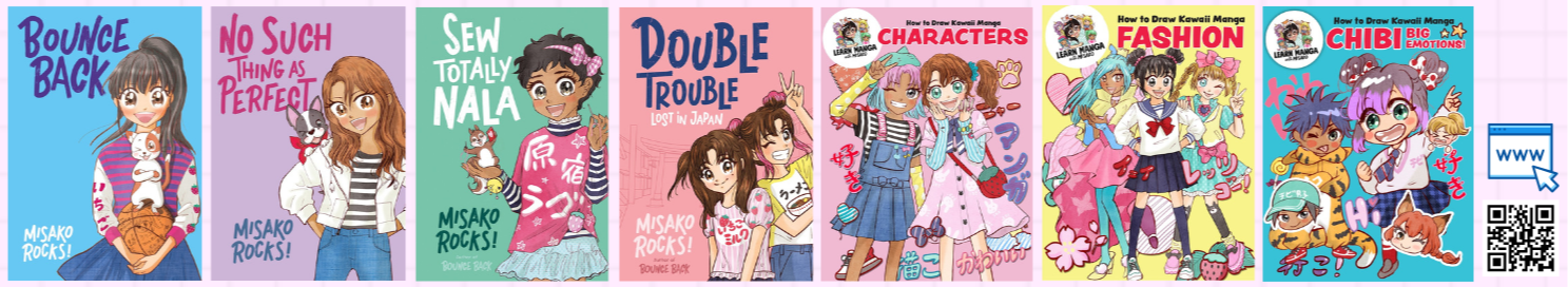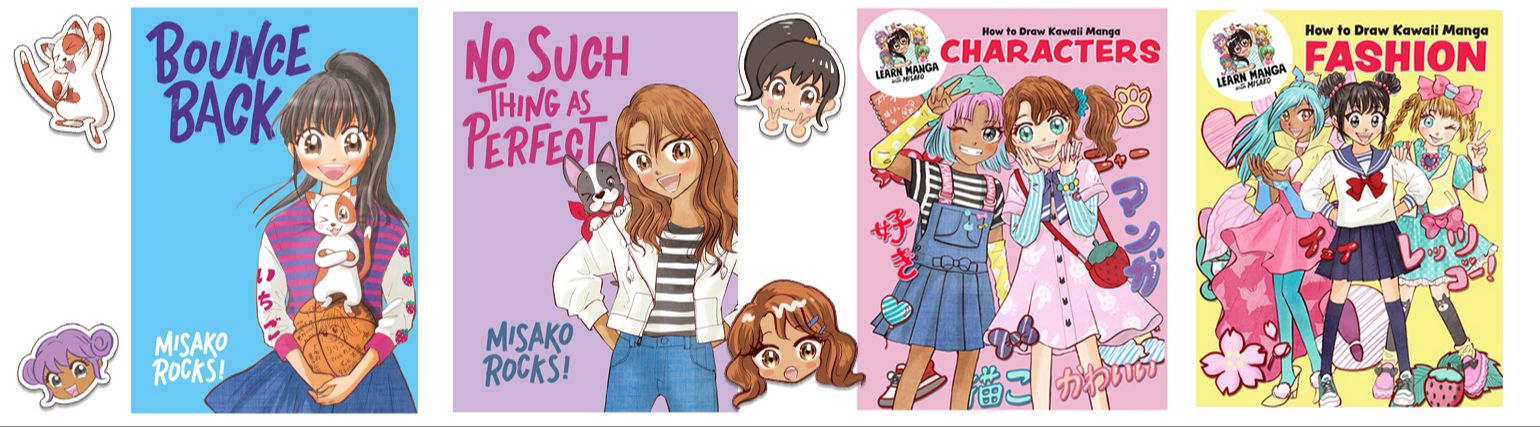I'm also the creator of an activity book series called How to Draw Kawaii Manga with Misako Rocks. These books teach kids how to draw in manga style.Â